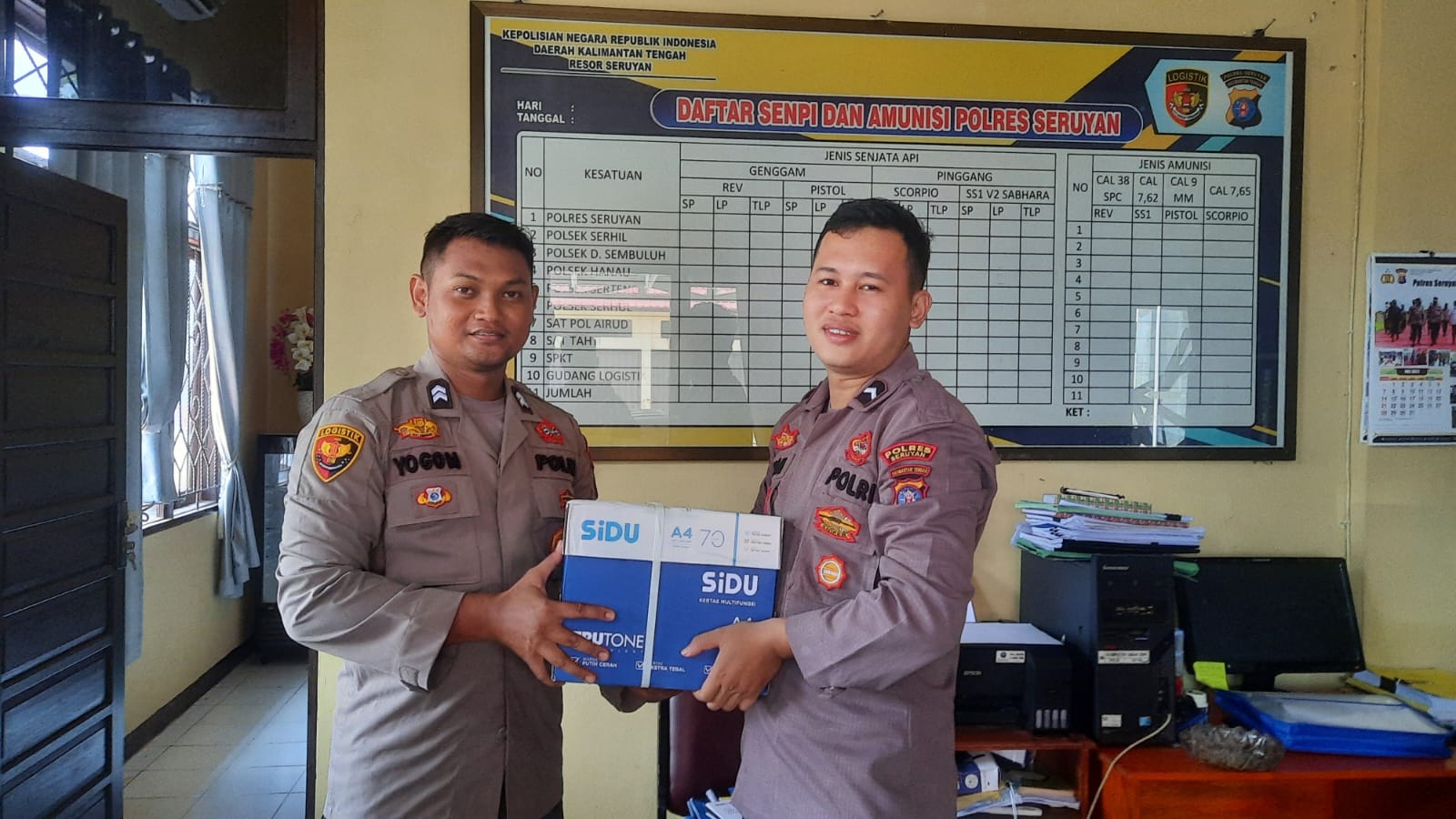 WAJAHBORNEO.com, Seruyan – Polres Seruyan Jajaran Polda Kalteng – Pagi ini Personel Baglogistik Polres Seruyan melaksanakan kegiatan Pendistribusian Barang Alat Tulis Kerja (ATK) untuk keperluan kerja, Kegiatan ini bertempat di Wilayah Kabupaten Seruyan (Kuala Pembuang) dilaksanakan oleh Personil Baglogistik yaitu BRIPKA RIDWAN HARUN selaku Ps. Kaurmin Log dan BRIPTU YOGO MULYO B selaku Brigadir Logistik serta didampingi oleh Kabag Log Polres Seruyan AKP MUHAMAD ANWAR.Rabu(30/08/2023)