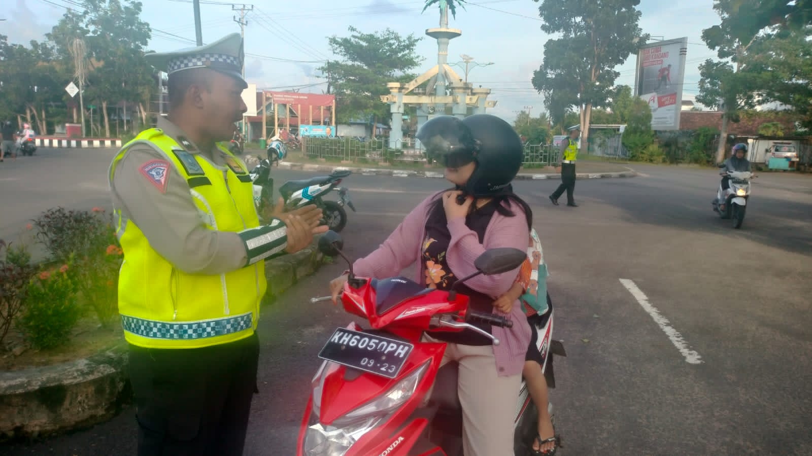 Tampak terlihat, Personil Satlantas Polres Seruyan yang bertugas mengatur arus lalu lintas dipagi hari menegur pengendara yang tidak menggublnakan helm dipersimpangam Trafik Light (Lampu Merah). karena hal ini selain melanggar peraturan lalu lintas juga berbahaya bagi keselamatan pengendaranya itu sendiri.