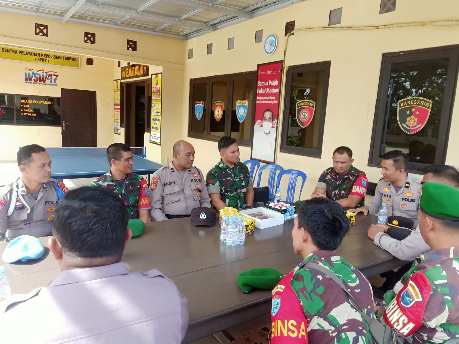 Kunjungan personel Koramil 1015-09/Seruyan Hilir ke Mako Polsek Seruyan Hilir dalam rangka HUT Bhayangkara ke -77. Kedatangan rombongan Danramil 1015-09/Seruyan Hilir yang di wakili Danposramil Seruyan Hilir Timur Serka Ico bersama 7 personil Koramil diterima langsung oleh Plh. Kapolsek Seruyan Hilir IPDA Rais Mahajir, S.H. dengan di dampingi oleh personel Polsek Seruyan Hilir.