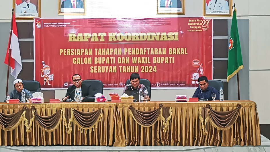 wajahborneo.com, Seruyan – Mendekati hari H pendaftaran calon Bupati dan Wakil Bupati yang akan mengikuti Pemilihan Kepala Daerah (Pilkada) 2024, Komisi Pemilihan Umum (KPU) Kabupaten Seruyan menggelar Rapat Koordinasi (Rakor) di Aula Bappedalitbang Seruyan, Sabtu, 24 Agustus 2024.