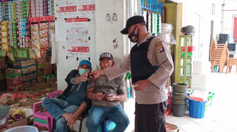 WAJAHBORNEO.com, Seruyan – Personel Polres Seruyan membagikan masker dan melaksanakan Sosialisasi Protokol Kesehatan kepada masyarakat, guna menekan angka penularan Covid-19 di Kabupaten Seruyan, Sosialisasi dilakukan Aipda Bambang Kiswanto yang sedang berbincang kepada masyarakat agar terus melaksanakan sosialisasi mematuhi protokol kesehatan guna menekan Angka Penularan Covid-19 serta menjaga Kamtibmas di lingkungan sekitar.