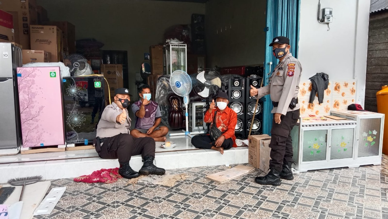 seperti halnya yang dilakukan oleh personel sat binmas ini lakukan silaturahmi terhadap masyarakat sekaligus terus tekankan disiplin Prokes dalam upaya menekan penyebaran Covid 19.