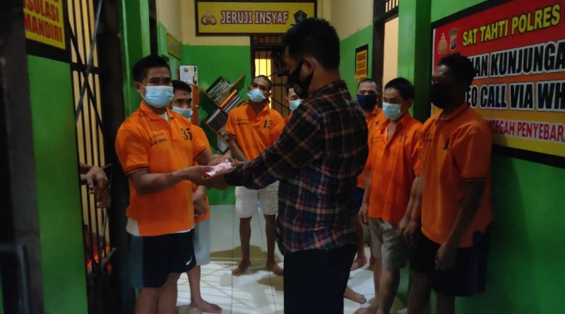 WAJAHBORNEO.com, Seruyan – Sat Tahti Polres Seruyan, jajaran polda Kalimantan Tengah, Tahanan di Sel Polres Seruyan menerima perlengkapan mandi dan Vitamin yang di berikan kepada perorangan , Jum’at (18/06/2021) Siang.