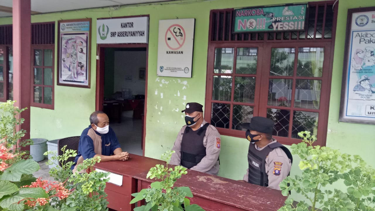 Seperti yang dilakukan personil Sat Binmas sambang di sekolah dan bertatap muka kepada Kepala Sekolah Sdr.Ahmad Sayuti S.Pd. dan Guru di di SMP ASSERUYANIYYAH.