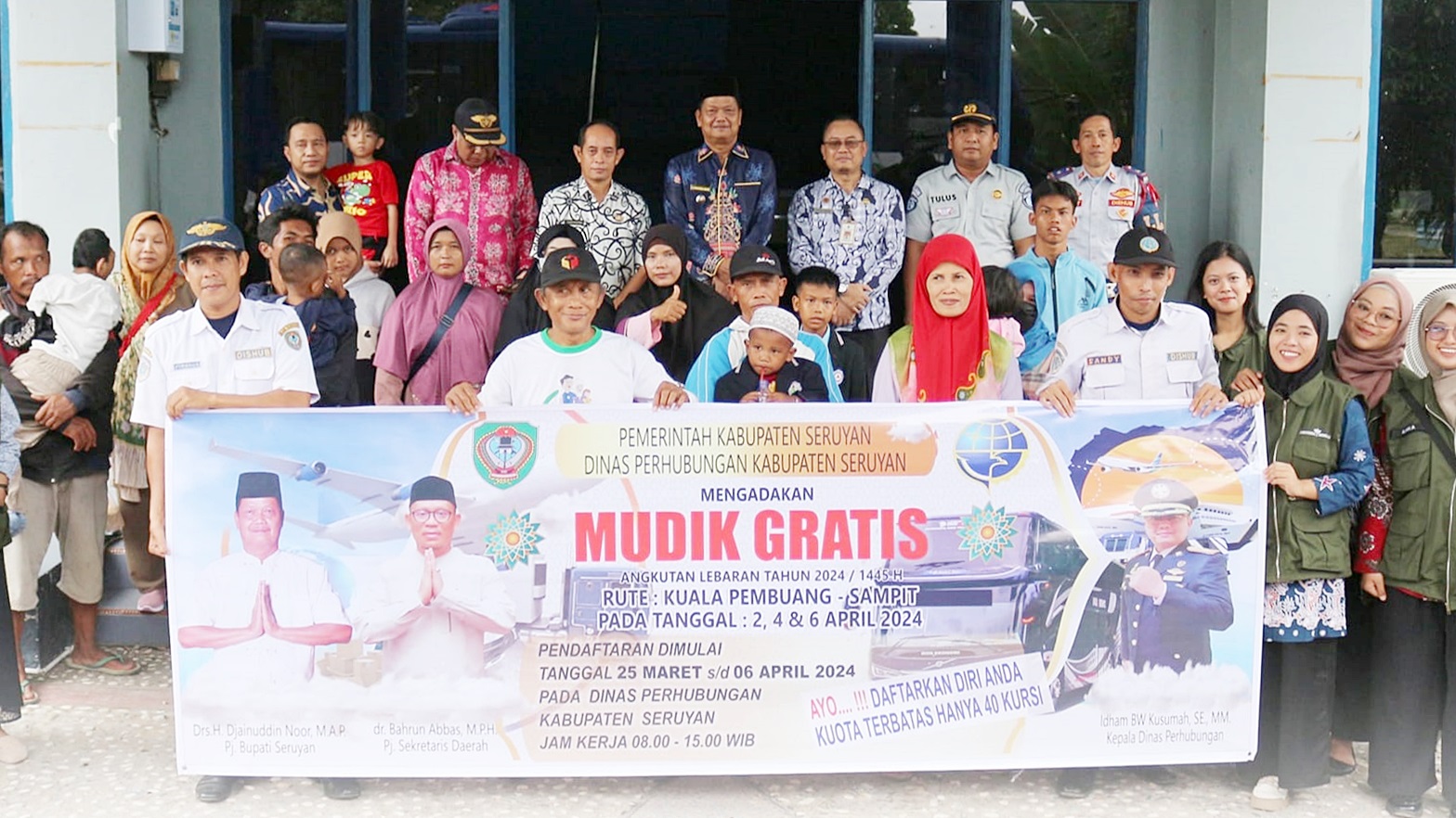 wajahborneo.com, Seruyan – Penjabat Bupati Seruyan, H Djainuddin Noor melepas peserta Mudik Gratis Angkutan Lebaran Tahun 2024/1445H di halaman kantor Dinas Perhubungan (Dishub) Seruyan, Kuala Pembuang, Rabu, 4 April 2024.