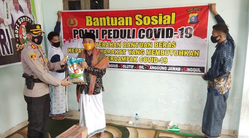 Kanit Bintibmas Bripka Bayu Adi wibowo menngimbau mereka diwajibkan memakai masker, mencuci tangan dan menjaga jarak saat menerima bantuan baksos berupa kebutuhan pokok.
