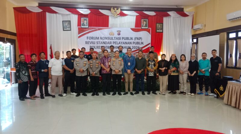 wajahborneo.com, Seruyan – Partisipasi masyarakat diperlukan dalam upaya meningkatkan pelayanan publik yang berkualitas di Kabupaten Seruyan. Untuk itu Polres Seruyan menggelar Forum Konsultasi Publik (FKP) Review Standar Pelayanan Publik Tahun 2026 di Aula Patriatama 95 Polres Seruyan, Jumat, 24 April 2026.