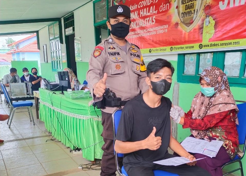 Disamping itu juga Kapolsek memberikan sambutan serta ucapan terima kasih atas antusias Masyarakat terhadap Vaksinasi ini.