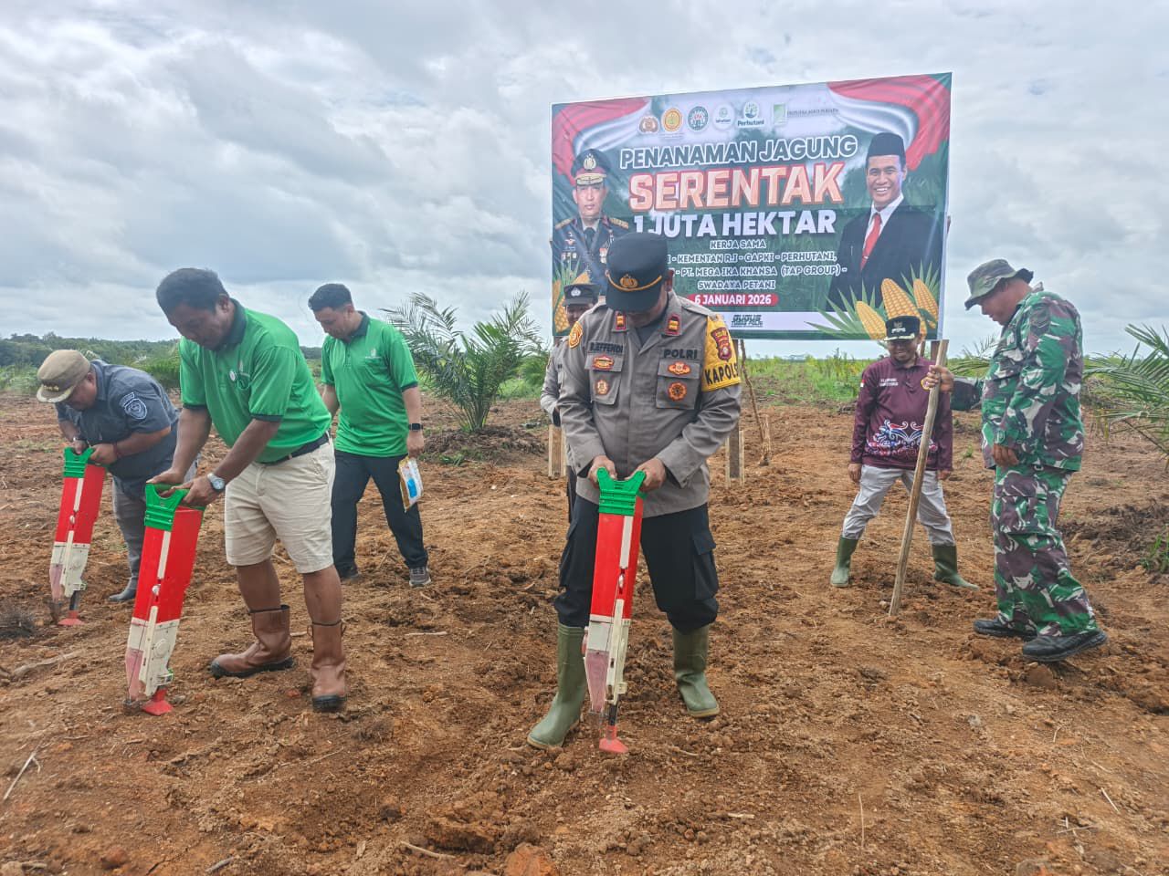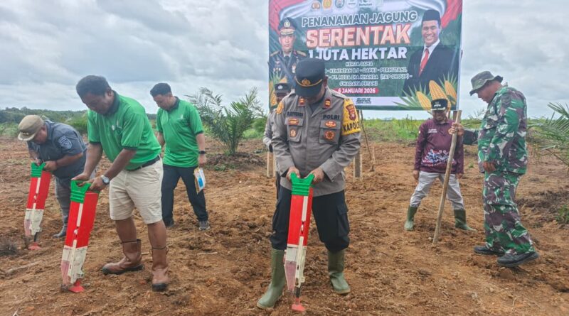 wajahb👁rneo.com, Seruyan – Polsek Danau Sembuluh melakukan penanaman jagung perdana program tumpang sari di lahan milik PT Mega Ika Khansa (MIK), Desa Sembuluh II, Kecamatan Danau Sembuluh, Kabupaten Seruyan, Rabu, 7 Januari 2025.