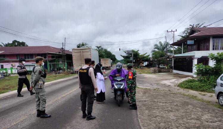 Personil Polsek Hanau bersama Petugas Posko Lebaran 2021 yang terdiri dari Satpol PP, RSUD Hanau dan Koramil 1015-16 Hanau melakukan pendisiplinan Kepada pengguna jalan baik pengguna roda 2 maupun kendaraan roda 4 yang tidak memakai masker langsung diberi sanksi sosial berupa sansi teguran bertempat di Jalan Jendral Sudirman (Simpang 3 RSUD Hanau) Kecamatan Hanau Kabupaten Seruyan, Rabu (19/05/2021) pagi.