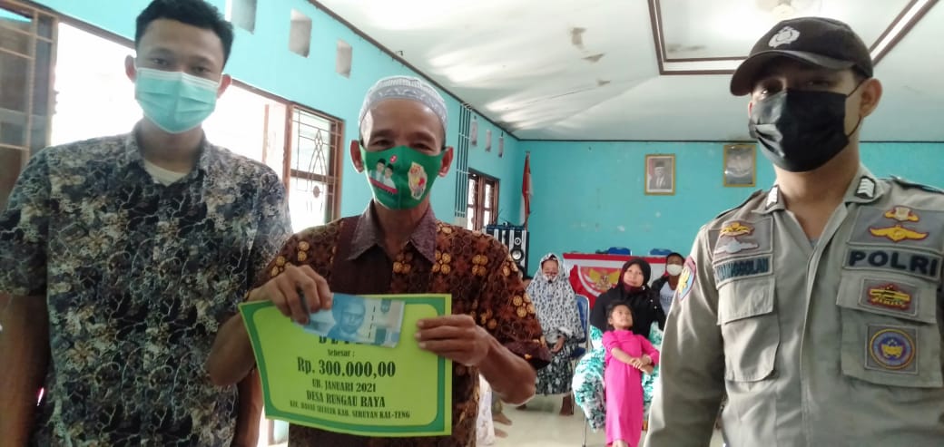 Pembagian BLTDD sebesar Rp.300.000,- tersebut dibagikan di Balai Pertemuan Kantor Desa Rungau Raya Kec. Danau Seluluk. Kepala Desa Danau Seluluk hadir menyaksikan pembagian BLTDD tersebut.