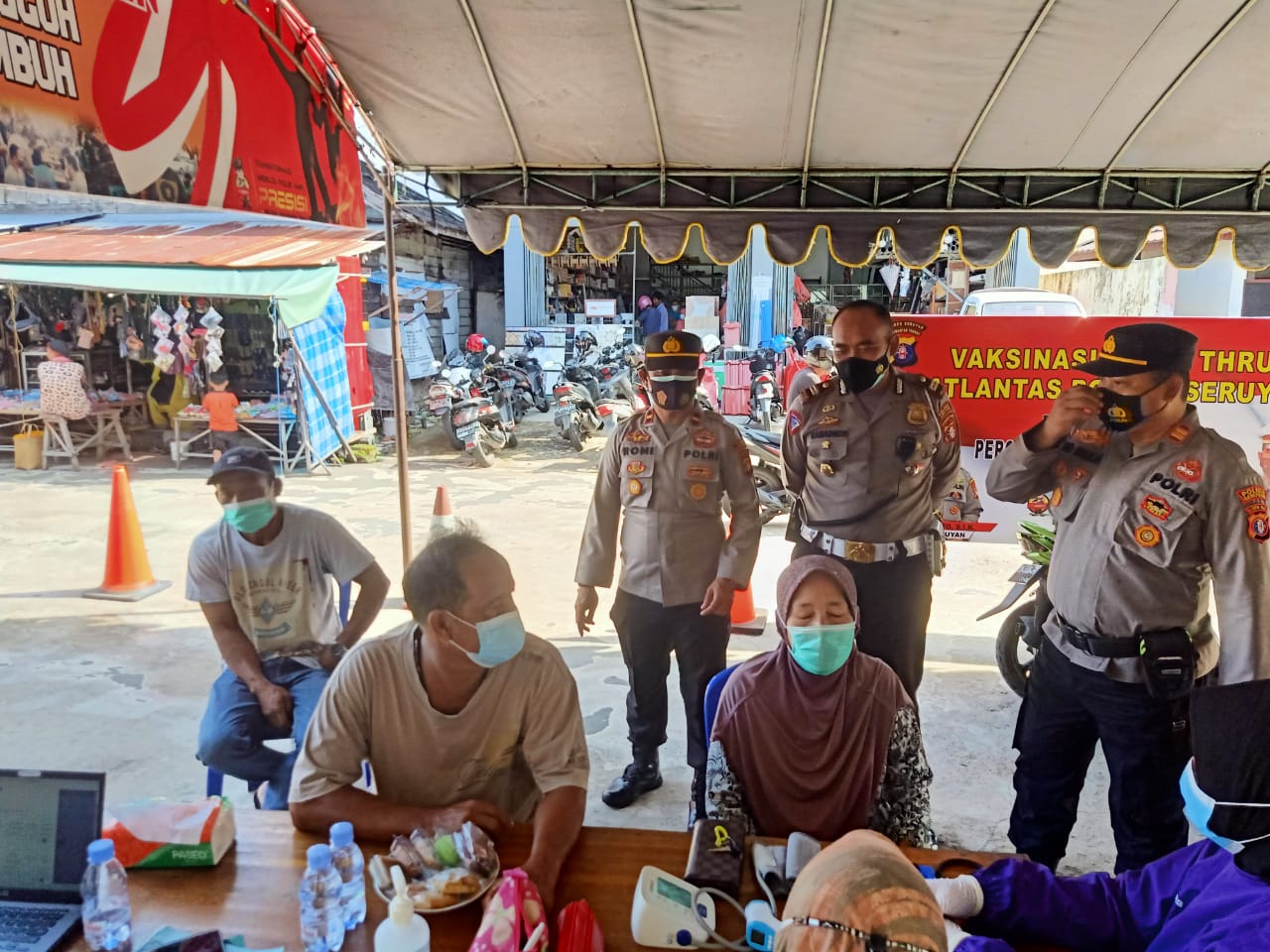 WAJAHBORNEO.com, Seruyan – Polsek Seruyan Hilir- Kapolsek Seruyan Hilir beserta Personil Polsek Seruyan Hilir terus mengawal Dan Memantau kegiatan Vaksin Covid-19 Drive thru yang di jadwalkan hari ini untuk Masyarakat kabupaten Seruyan Khususnya Kec.Seruyan Hilir Dengan Sasaran Masyarakat Umum yang ada di wilayah kecamatan Seruyan Hilir Penyuntikan hari ini sendiri di laksanakan di Pasar Saik Kuala Pembuang Kecamatan Seruyan Hilir, Kabupaten Seruyan, Sabtu (26/02/2022).