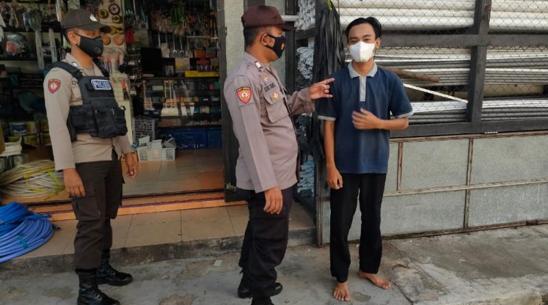 Anggota Polsek Seruyan Hilir melakukan patroli menyasar tempat keramian salah satunya dipertokoan di Kuala Pembuang Kecamatan Seruyan Hilir Kabupaten Seruyan, Sabtu(17/07/2021) Pagi.