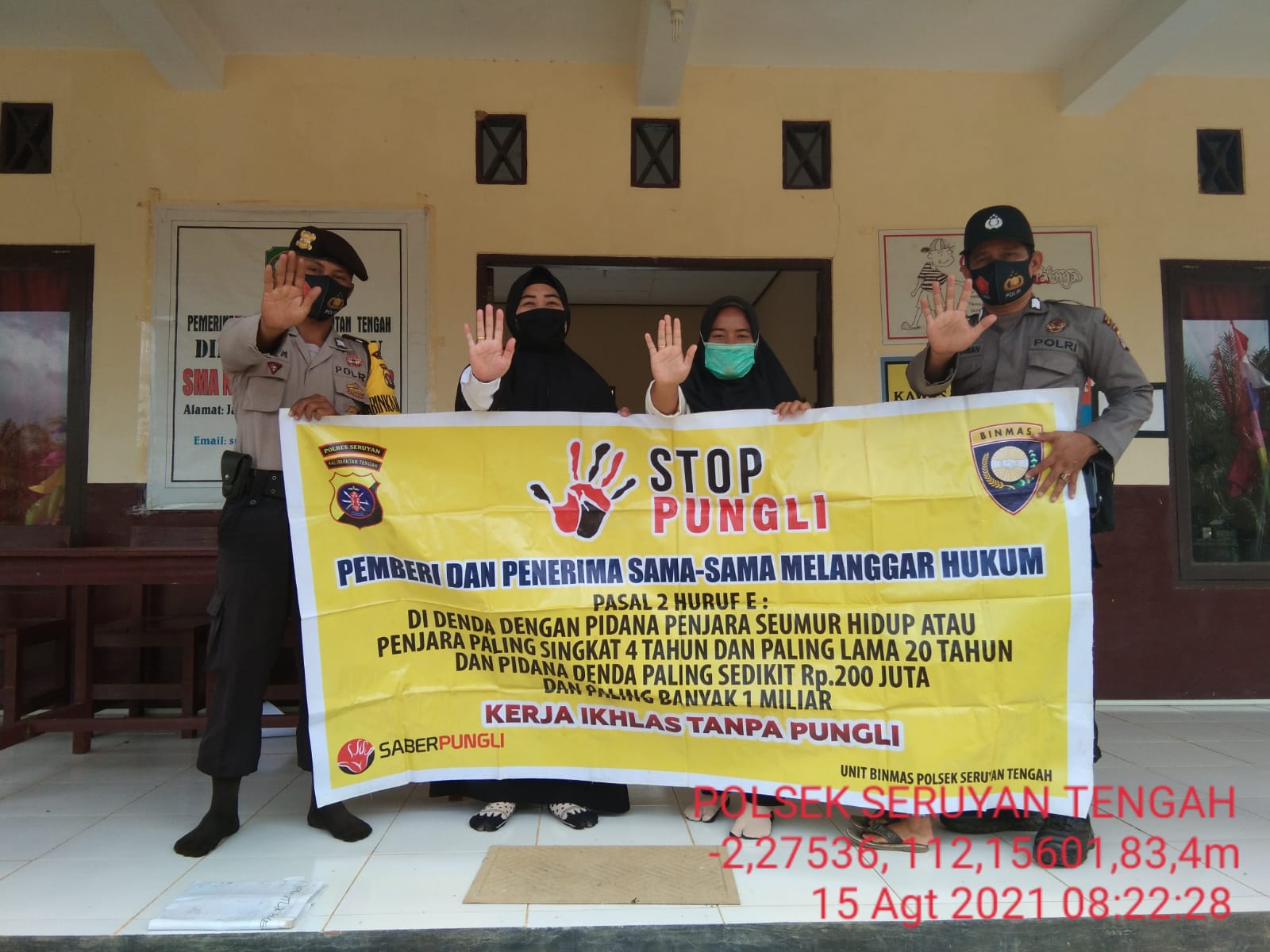 Kapolres Seruyan AKBP BAYU WICAKSONO, S.H.,S.I.K.M.Si melalui Kapolsek Seruyan Tengah IPTU ROBERTUS SONNY A.W, S. Sos. menjelaskan bahwa, menjelaskan dengan adanya sosialisasi dari anggota Polsek Serteng ini agar masyarakat merasa nyaman dengan tidak adanya pungutan liar. Mari kita mencegah praktek – praktek pungli, sehingga tercipta pelayanan publik masyarakat yang baik.