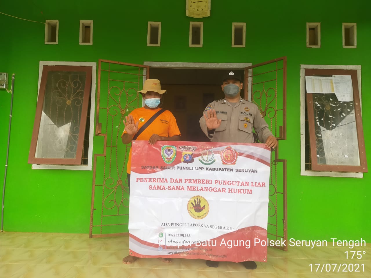 Kapolres Seruyan AKBP BAYU WICAKSONO, S.H.,S.I.K.M.Si melalui Kapolsek Seruyan Tengah IPTU ROBERTUS SONNY A.W, S. Sos. menjelaskan bahwa, menjelaskan dengan adanya sosialisasi dari anggota Polsek Serteng ini agar masyarakat merasa nyaman dengan tidak adanya pungutan liar. Mari kita mencegah praktek – praktek pungli, sehingga tercipta pelayanan publik masyarakat yang baik.