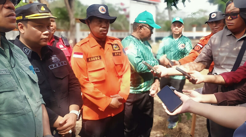 Kepala Pelaksana BPBD Kabupaten Seruyan, Agung Sulistiyono memberikan keterangan pers usai melakukan penanaman pohon di area kantor BPBD. Foto/wajahborneo.com