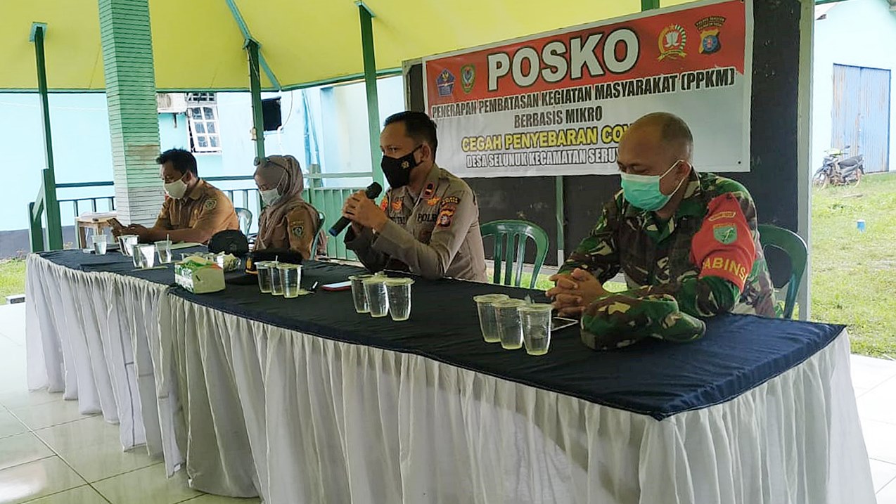 Dwi menuturkan, pihaknya menyerahkan secara simbolis spanduk posko PPKM BM sebagai bentuk dukungan penuh kepada pemerintah desa dalam menanggulangi pandemi Covid-19.