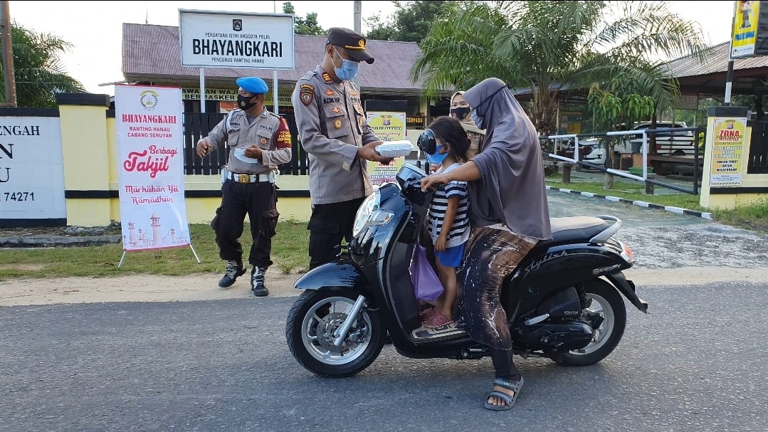 Tak mau kalah, Polsek Hanau ikut juga berlomba mengumpulkan kebaikan dengan berbagi takjil untuk buka puasa masyarakat sekitaran Desa Pembuang Hulu II, Jumat ( 16/4/2021).