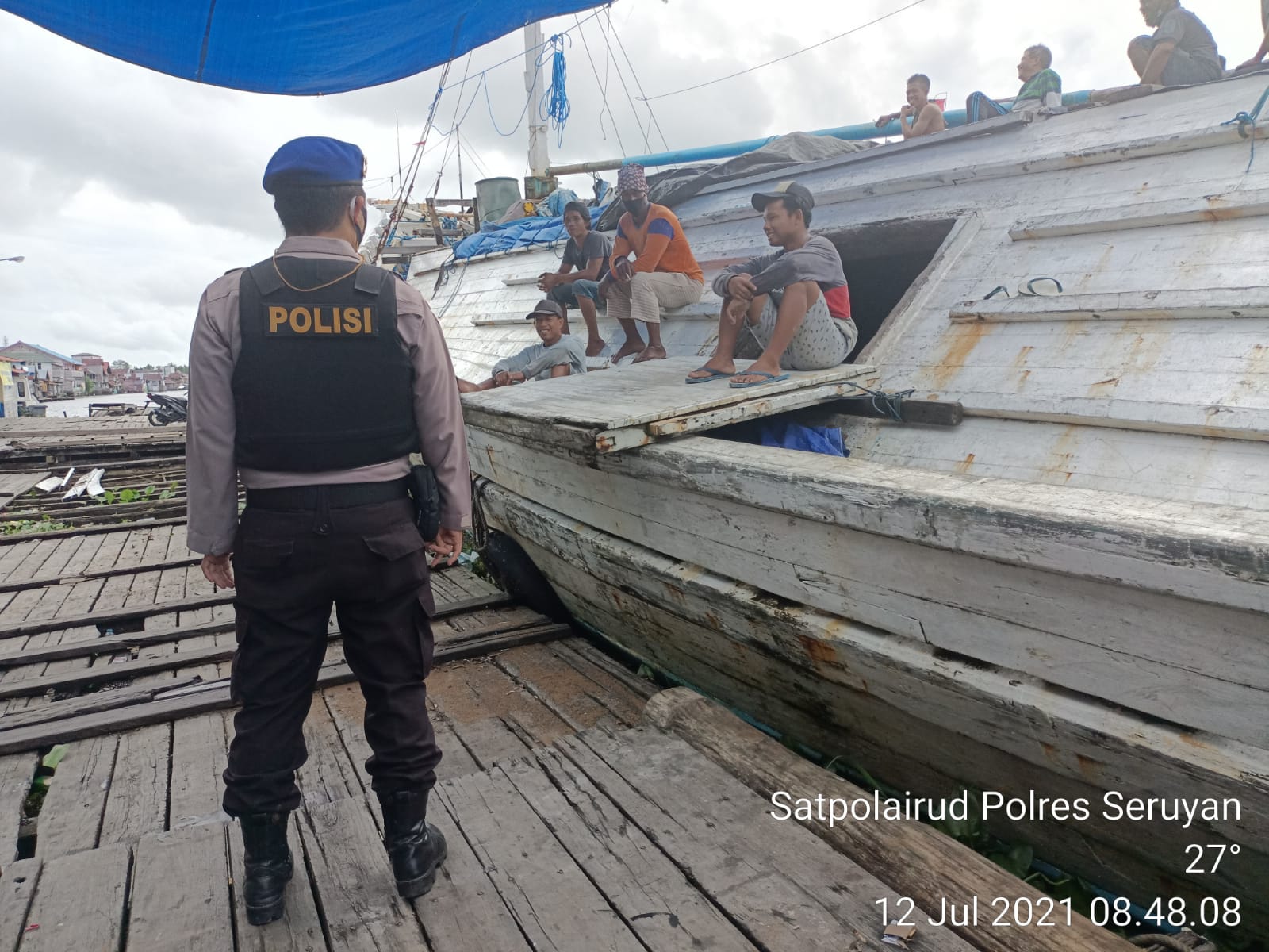 WAJAHBORNEO.com, Seruyan – Satpolairud Polres Seruyan menyambangi masyarakat di sekitar Dermaga Bongkar muat Jalan Ais Nasution Kel.Kuala pembuang I Kec. Seruyan Hilir, Kab. Seruyan. Senin (12/07/2021). Pukul 09.00. wib