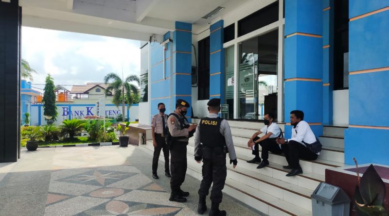 WAJAHBORNEO.com, Seruyan – Satuan Sabhara Polres Seruyan melaksanakan pengamanan obyek vital oleh Bripka Agus Suherman, personil Satuan Sabbhara Polres Seruyan yang ditugaskan untuk melaksanakan pengamanan di Kator Cabang Pembantu (KCP) BPK Kuala Pembuang,BRI, BNI,MANDIRI Rabu (14/07/2021).