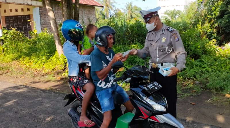 WAJAHBORNEO.com, Seruyan — Seruyan (24/10/2021) – Untuk antisipasi Penyebaran Covid 19, Satuan Lalu Lintas Polres Seruyan jajaran Polda Kalteng kegiatan bagi – bagi masker.