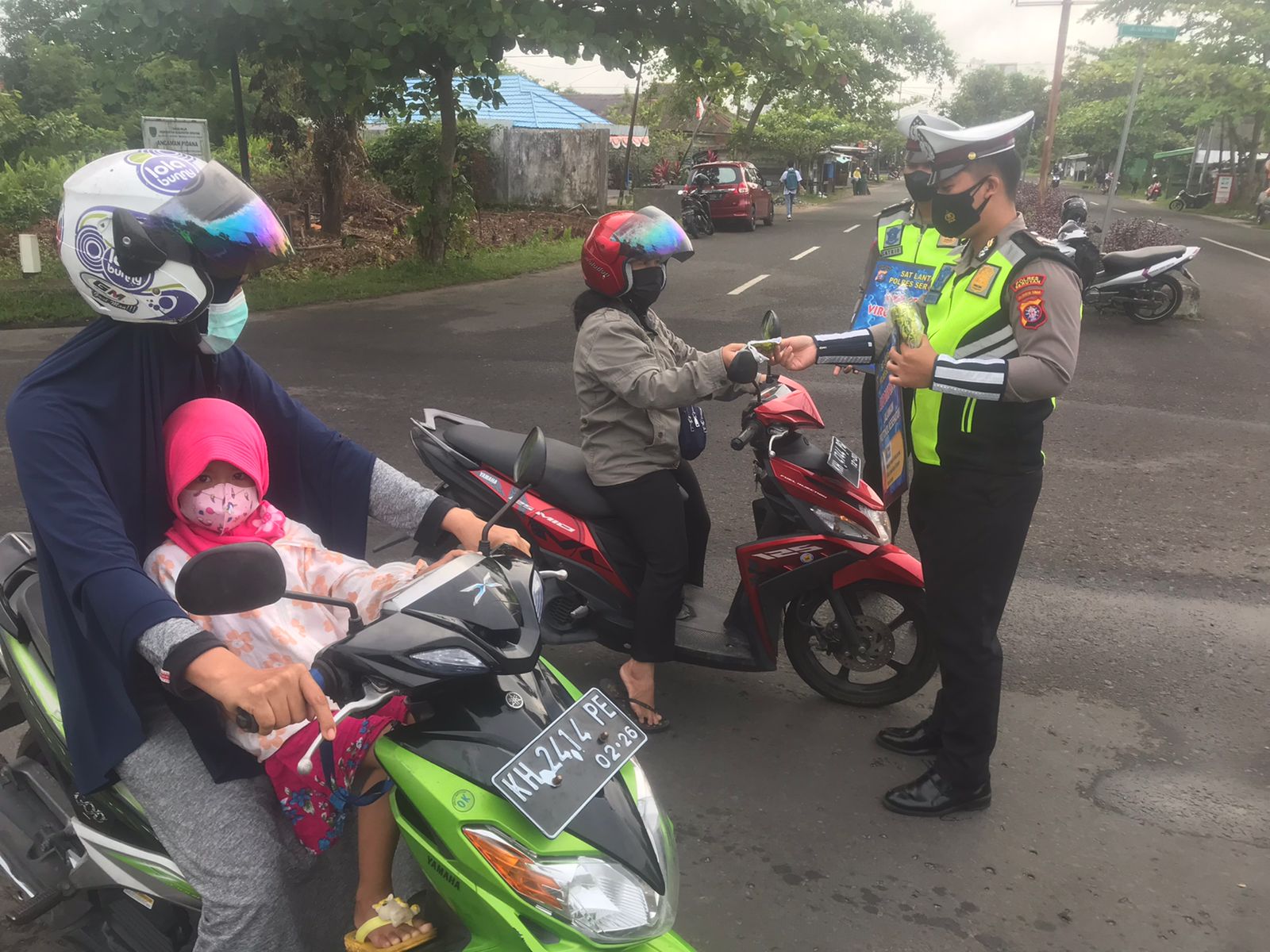 Dalam kegiatan tersebut, personil satlantas juga menghimbau kepada masyarakat baik pengguna kendaraan umum dan juga kendaraan Pribadi yang berisi tentang hinbauan tertib lalu lintas dan prokes.