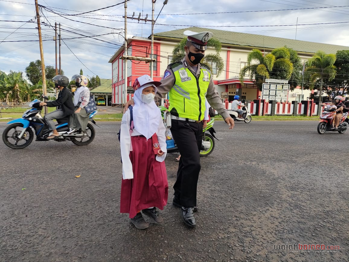 WAJAHBORNEO.com, Seruyan – Personel Satlantas Polres Seruyan rutin setiap pagi atur lalu lintas dan bantu anak sekolah menyebrang jalan Berikan pelayanan prima, Anggota Satuan Lalu Lintas (Sat Lantas) Polres Seruyan melakukan pengaturan arus lalu lintas sekaligus membantu menyeberangkan anak-anak sekolah yang akan berangkat ke Sekolah untuk mengikuti proses belajar mengajar, Selasa (07/06/2022) pagi.