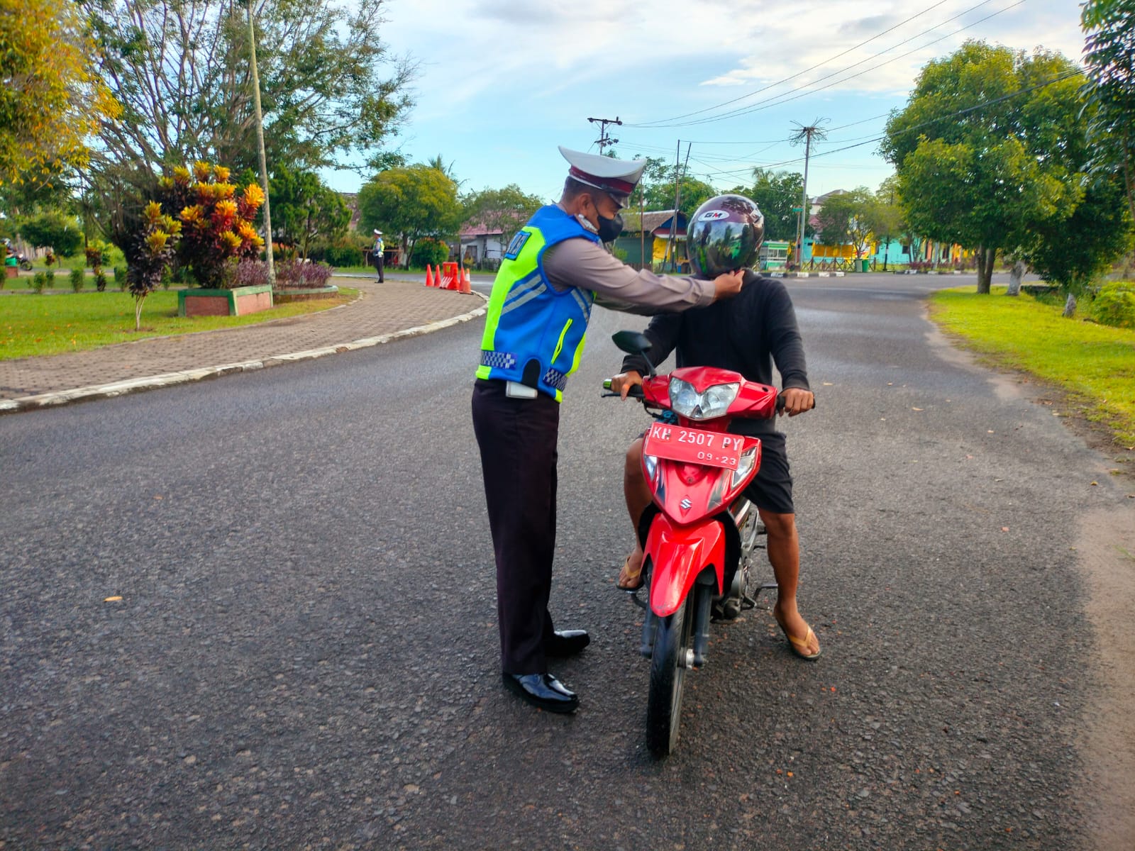 Pengendara yang kebetulan tidak meng klik helm yang digunakan, diberikan teguran dan diminta meng klik helm, untuk keselamatan selama berkendaraan.