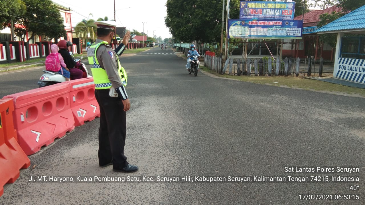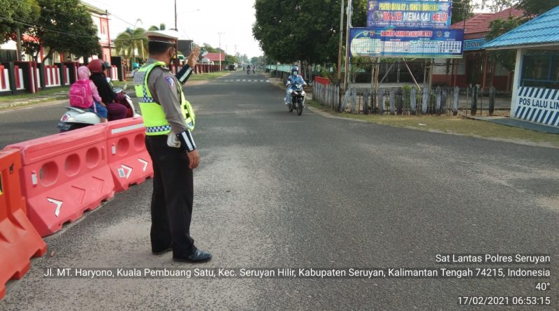 WAJAHBORNEO.com, Seruyan – Guna memberikan pelayanan kepada masyarakat di pagi hari, Sat Lantas Polres Seruyan, jajaran Polda Kalteng, menurunkan personelnya melaksanakan pengaturan lalu lintas di jalan – jalan dalam Kota Kuala Pembuang, Rabu, 17 Februari 2021 pagi.