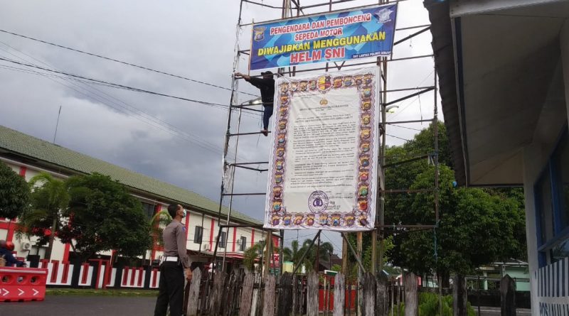 Melalui Unit Dikyasa Satlantas Polres Seruyan melakukan pemasangan spanduk yang berisi himbauan terkait wajib memakai helm bagi pengguna roda dua di lokasi strategis Kuala pembuang.