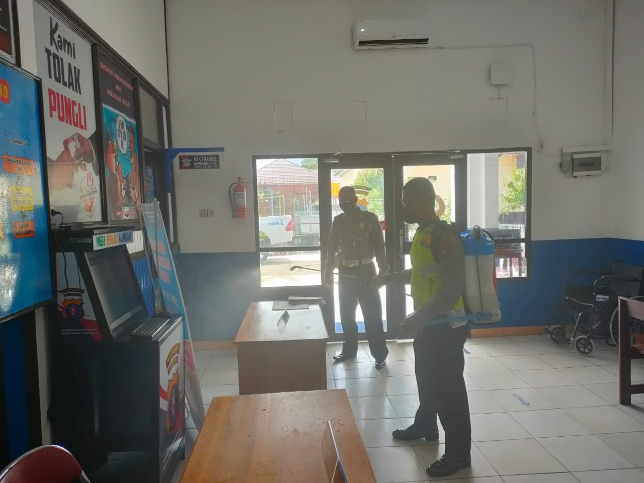 Satlantas Polres Seruyan selalu berupaya melakukan langkah antisipasi yakni rutin melakukan penyemprotan desinfektan sebelum dan setelah kegiatan Pelayanan di Satpas selesai. Hal ini dilaksanakan setiap harinya.