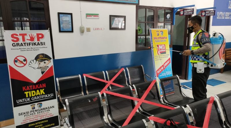 Satlantas Polres Seruyan selalu berupaya melakukan langkah antisipasi yakni rutin melakukan penyemprotan desinfektan sebelum dan setelah kegiatan Pelayanan di Satpas selesai. Hal ini dilaksanakan setiap harinya.