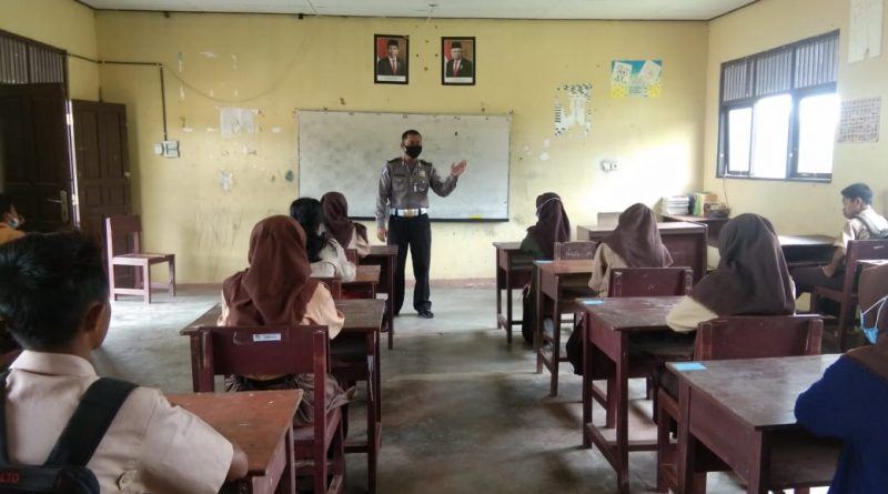 WAJAHBORNEO.com, Seruyan – Untuk menekan angka kecelakaan lalu lintas, Satuan Polisi Lalu Lintas (Satlantas) Polres Seruyan, Polda Kalteng gencar mensosialisasikan tata tertib lalu lintas bagi pelajar, di antaranya di SMP NEGERI 3 Seruyan Raya, Sabtu (05/06/21).
