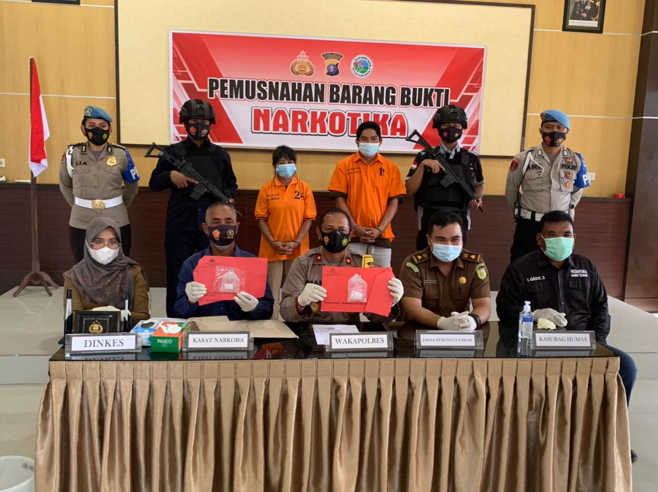 Wakapolres Seruyan Kompol Imam Riyadi, S.H. mengatakan barang bukti jenis sabu dimusnahakan dengan cara shabu di masukan kedalam larutan deterjen selanjutnya di blender, kemudian campuran air larutan deterjen berikut sabu tersebut di buang dengan cara di masukan ke dalam saluran pembuangan, dengan disaksikan oleh kedua pelaku.
