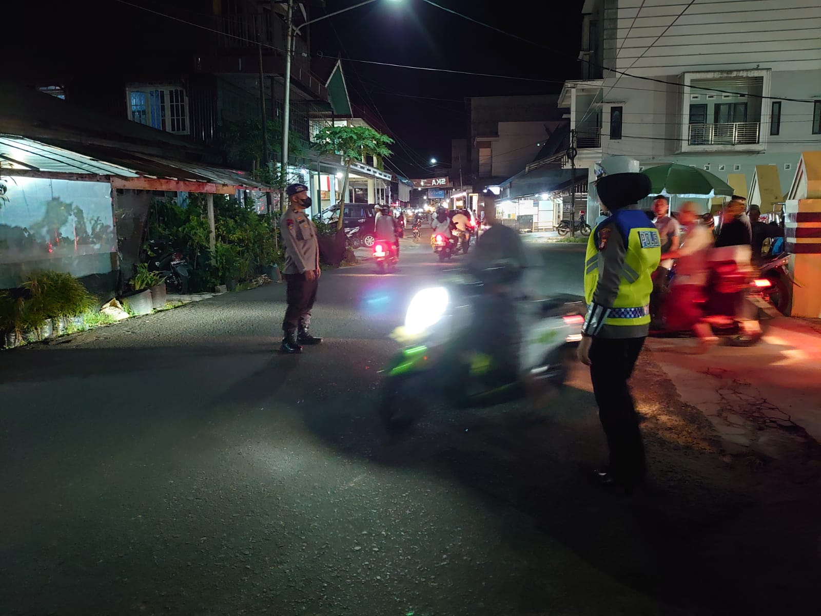 Personil Polres Seruyan melakukan pengaturan arus Lalu Lintas (Lalin) saat pelaksanaan Ibadah Sholat Tarawih pada masjid-masjid yang ada di Kuala Pembuang salah satunya Masjid Al Azhar di Jl. Ais Nasution, Selasa (28 Maret 2023) malam.