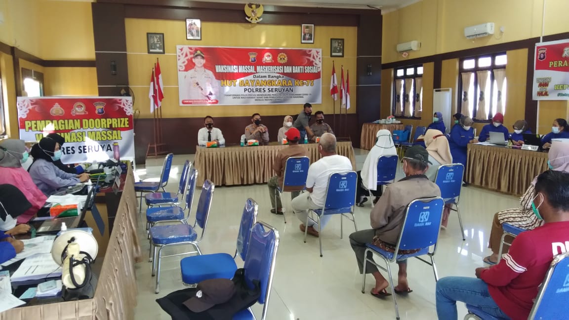 Polres Seruyan Menyiapkan Pembagian Doorprize Vaksinasi Masal Sebagai Menyemarakan Hari Bayangkara ke-75.