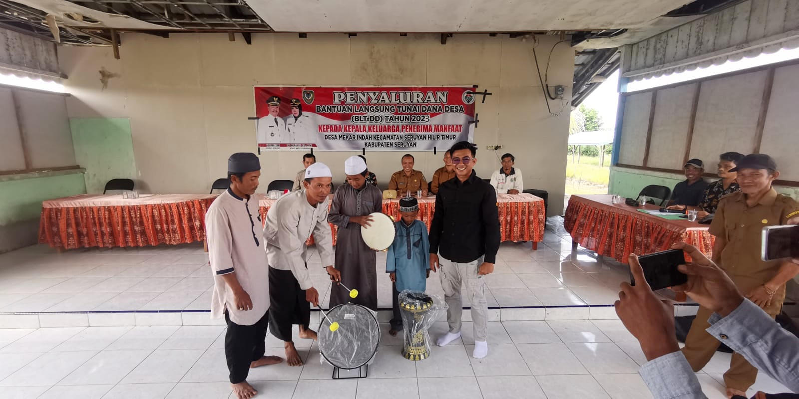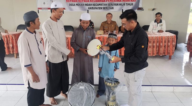 WAJAHBORNEO.com, Seruyan — Ketua Komite Nasional Pemuda Indonesia (KNPI) Kabupaten Seruyan, Zulkipli Khaidir menyerahkan bantuan untuk grup kesenian Hadrah di Desa Mekar Indah eks Trans Unit IV, Kabupaten Seruyan Hilir Timur, Kabupaten Seruyan, Selasa, 30 Mei 2023.