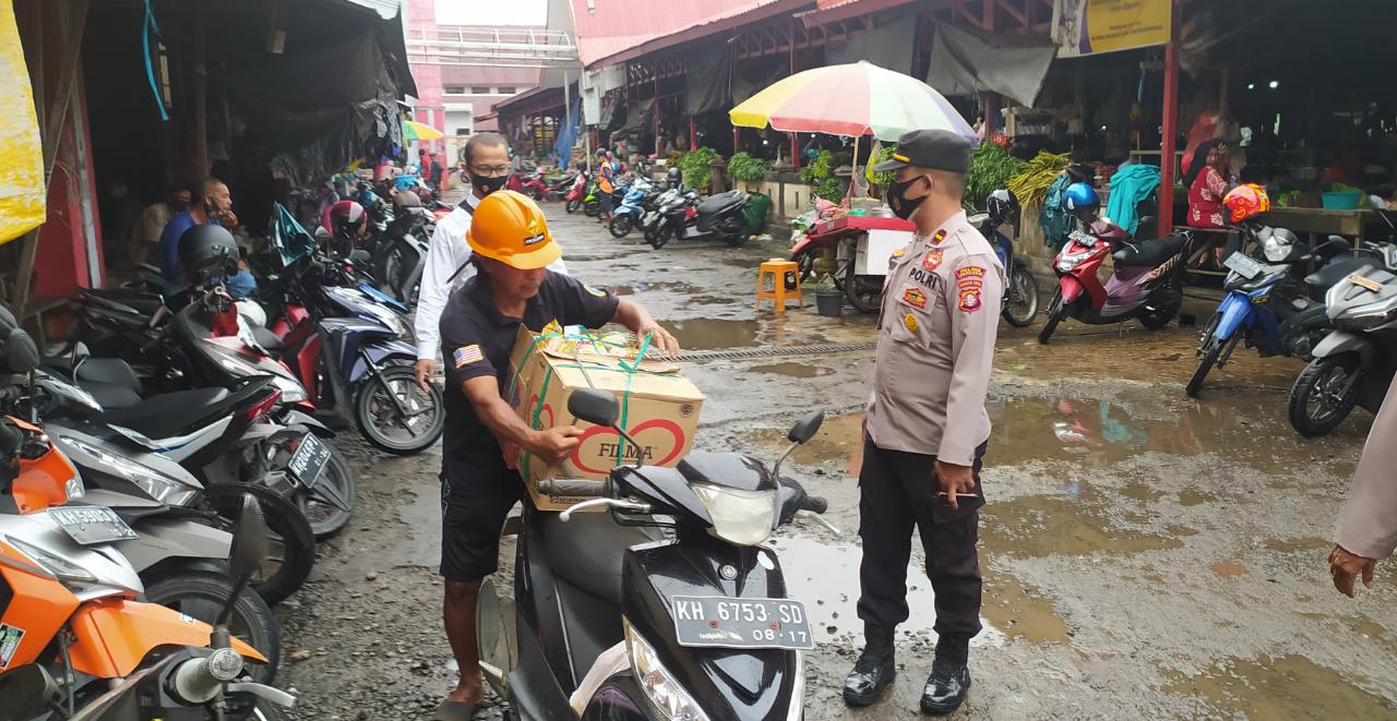 Kapolsek dan Anggota Polsek Seruyan Hilir melaksanakan patroli menyasar tempat Keramaian salah satunya di Pasar Saik Kuala Pembuang Kecamatan Seruyan Hilir Kabupaten Seruyan, Jum’at (04/02/2022).