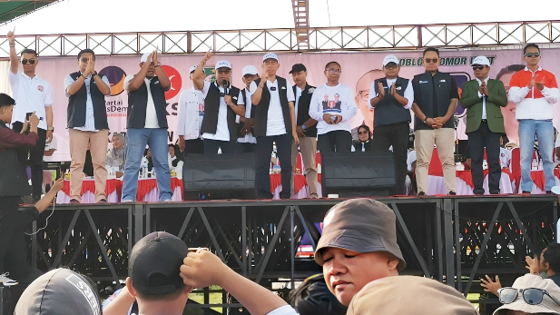 wajahborneo.com, Seruyan – Ribuan massa dari berbagai wilayah di Kabupaten Seruyan menghadiri kampanye akbar pasangan calon bupati dan calon wakill bupati nomor urut 1, Muhammad Mukhlis – Muhammad Aswin (MAS) di Stadion Mini Gagah Lurus Kuala Pembuang, Kecamatan Seruyan Hilir, Kamis, 7 November 2024.