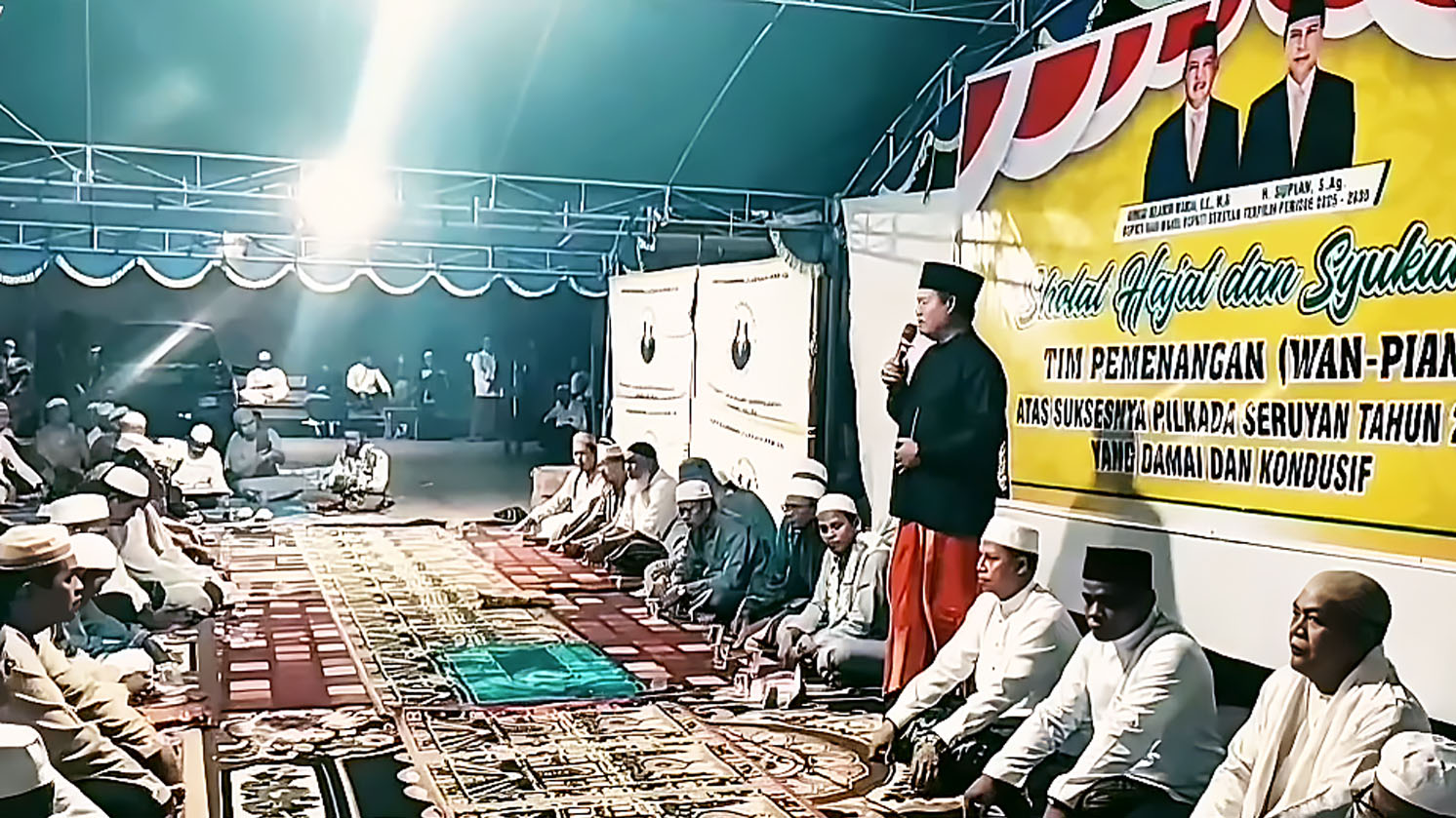 Kedatangan pendukung, simpatisan, timses, tokoh agama, tokoh masyarakat, tokoh pemuda tersebut untuk mengikuti sholat hajat dan syukuran atas terselenggaranya Pilkada Seruyan yang damai dan kondusif.