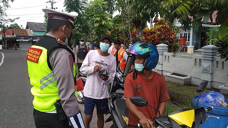 Dalam melaksanakan razia, anggota Satgas Yustisi juga selalu mengutamakan protokol kesehatan dengan menggunakan masker dan menjaga jarak untuk mencegah penyebaran Covid-19.