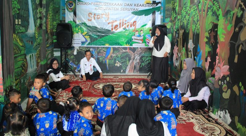 WAJAHBORNEO.com, Seruyan – Dalam rangka menumbuhkembangkan budaya gemar membaca melalui berbagai bacaan dan media, untuk menanamkan cinta kebudayaan bangsa, membangun karakter, serta menumbuh-kembangkan kecintaan anak-anak akan budaya nusantara melalui dongeng, Dinas Kearsipan dan Perpustakaan (Dispursip) Kabupaten Seruyan mengadakan acara Story Telling (mendongeng) untuk anak usia dini.