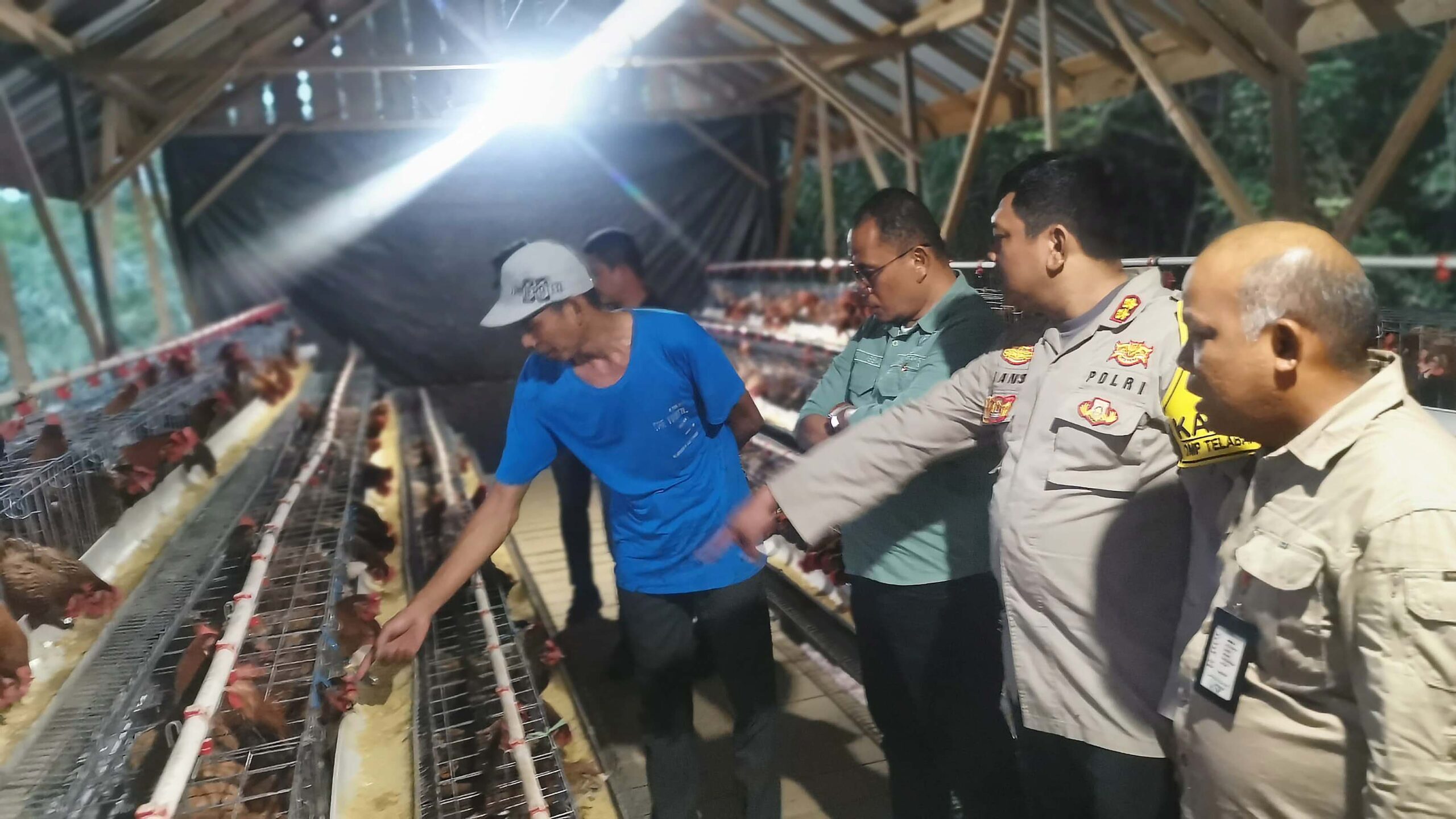Kapolres Seruyan AKBP Dr. Hans Itta P bersama Penjabat (Pj) Sekda dr. Bahrun Abbas mengunjungi peternakan ayam petelur di Desa Mugi Panyuhu Kecamatan Seruyan Tengah Kabupaten Seruyan baru-baru ini. Foto/wajahborneo.com