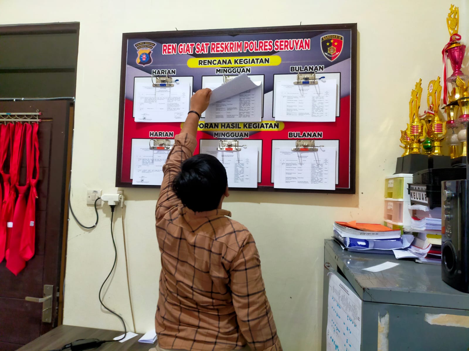 “Penyusunan rencana kegiatan dan hasil Kegiatan ini di susun setiap hari agar setiap kegiatan yang dilakukan oleh personel Satreskrim Polres Seruyan dari setiap unit dapat terorganisir dengan baik dan rapih kemudian pimpinan juga dapat mengetahui Kegiatan yang dilaksanakan setiap hari dari setiap anggotanya,” katanya.