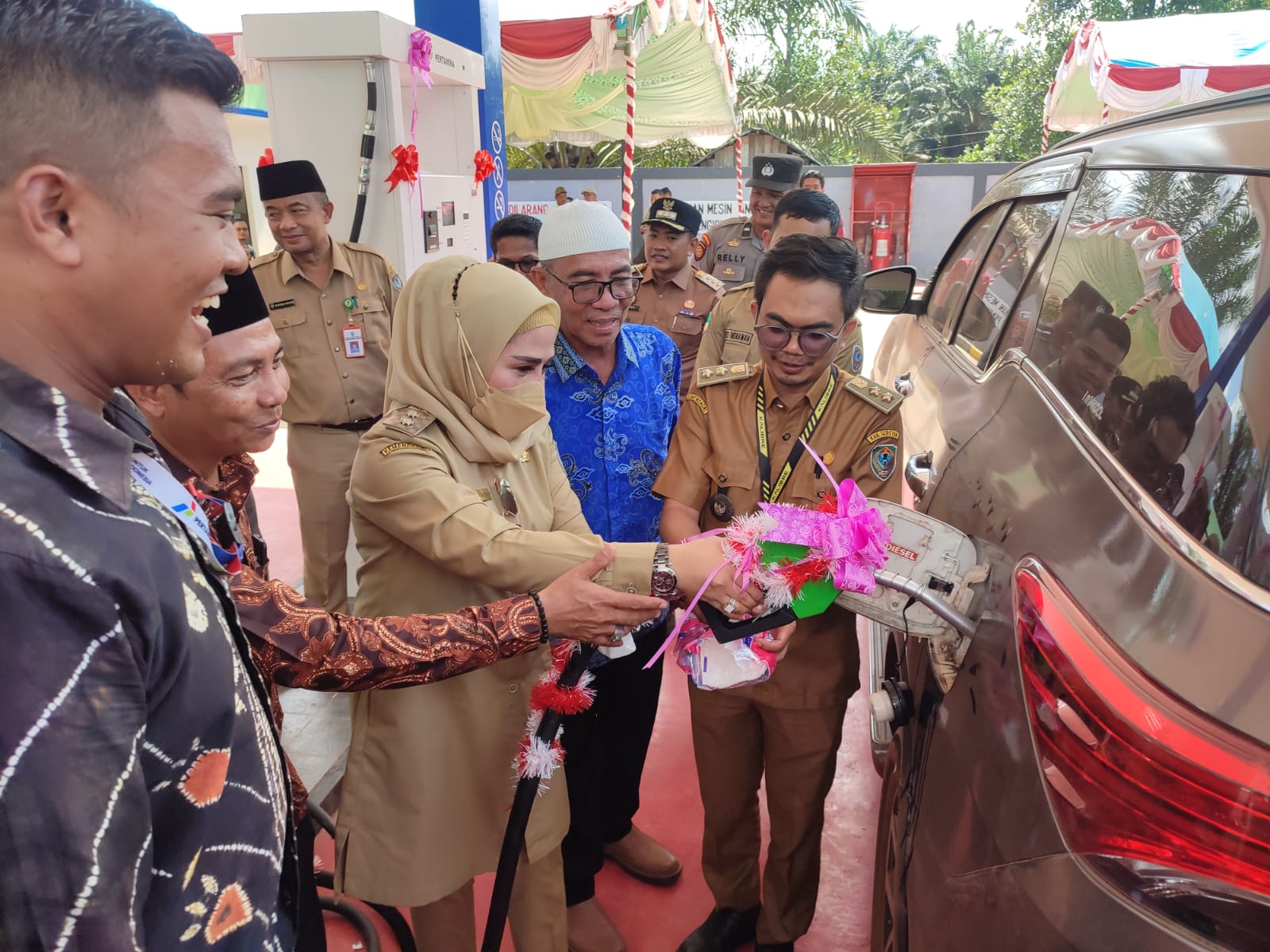 WAJAHBORNEO.com, Seruyan — Wakil Bupati Seruyan, Kalimantan Tengah Iswanti meresmikan pertashop yang berada di Desa Terawan, Kecamatan Seruyan Raya, Diharapkan dapat membantu masyarakat dalam mendapatkan bahan bakar minyak (BBM) yang sesuai dengan harga di SPBU.