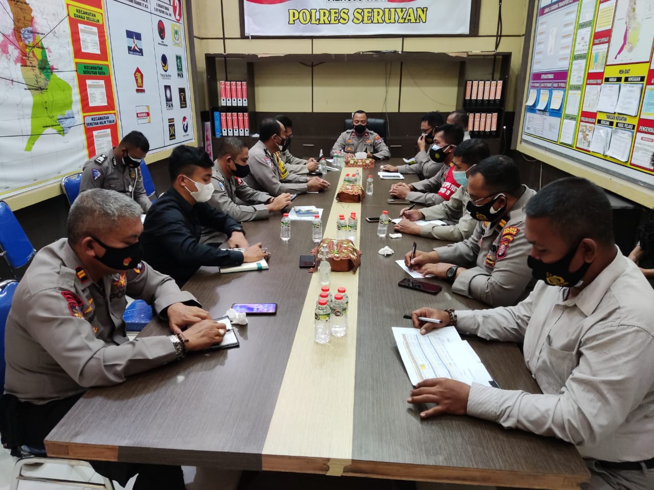 WAJAHBORNEO.com, Seruyan – Perihal kedatangan Tim supervisi biro rena polda kalteng perihal survei pelayanan SKCK dan SIM di Polres Seruyan , Wakapolres seruyan Kompol YUDHA SETIAWAN, S.H.,S.I.K. pimpin rapat tersebut berserta PJU Polres Seruyan, Rabu (04/08/2021).pagi