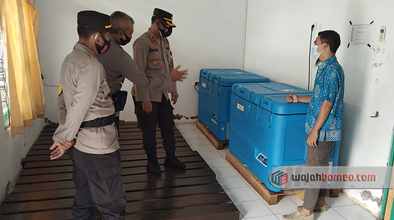 WAKALPOLRES Seruyan Kompol Imam Riyadi (ketiga dari kiri) melakukan pengecekan pengamanan Vaksin Covid-19 di Gudang Farmasi Dinas Kesehatan Kecamatan Seruyan Hilir, Kabupaten Seruyan, Sabtu, 9 Januari 2020. Foto/Ist/WAJAHBORNEO.com